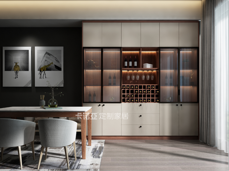 中國酒文化源遠(yuǎn)流長(zhǎng),酒更是生活氣氛的調(diào)味劑,中秋團(tuán)圓時(shí)刻,與老父談心,當(dāng)然少不了一杯好酒。有酒必有柜,在餐邊柜上設(shè)計(jì)一組酒柜,就著一桌美食,佐酒暢談,把酒言歡,自是怡然自得、雅興倍增。感受卡諾亞輕奢格調(diào)餐廳的優(yōu)雅溫馨,盡享美酒醇香。