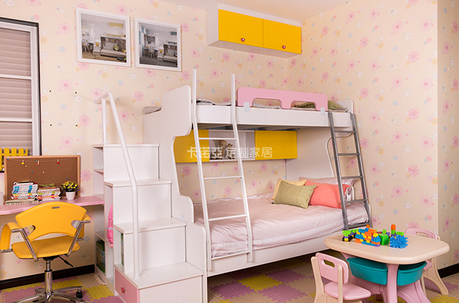 為了讓孩子享受到舒適的體驗,我們定制兒童家具時應(yīng)要根據(jù)其年齡來選擇相應(yīng)的款式、尺寸,桌面、椅子的高度一定要恰到好處,這樣能盡量避免造成兒童近視。而玩具架也不易太高,以兒童能夠自由的取放玩具為原則。